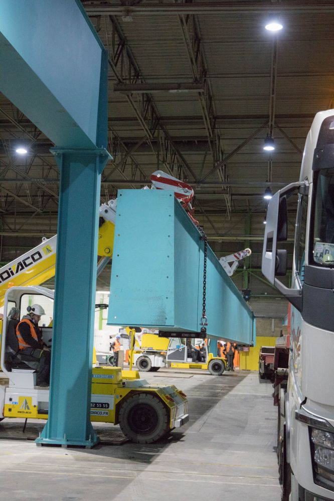 Un entraxe poteau de 37m est rare et l'opération demande un mode opératoire complexe pour des travaux en parfaite sécurité.