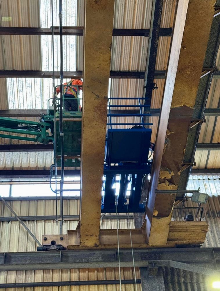 Discover the velocipede crane, a lifting device as rare as it is specialized, offering an impressive lifting height to meet the demanding needs of the local steel industry. It is currently being assembled by our experts.